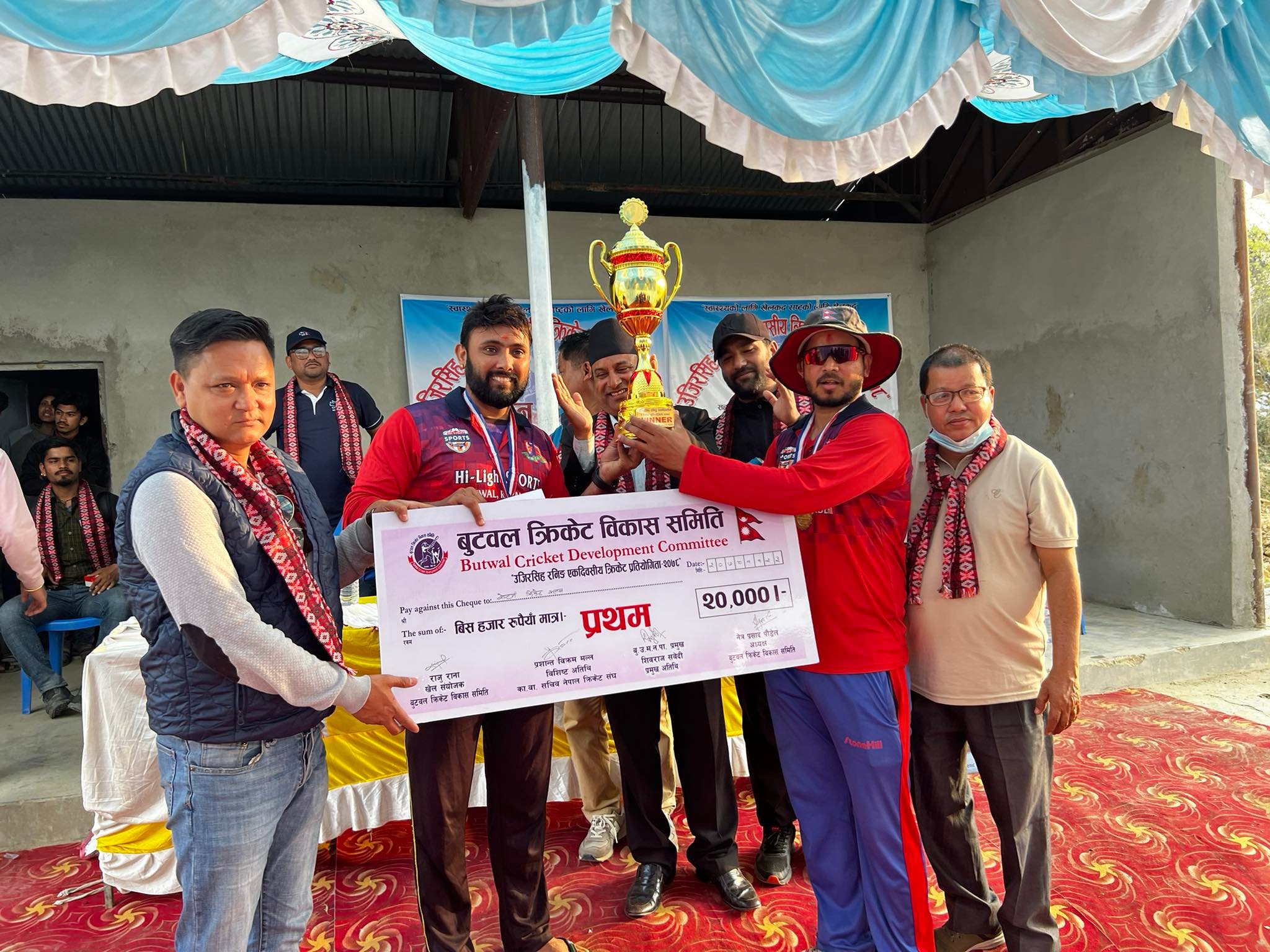 एक कार्यक्रमका बिच बुटवल उपमहानगरपालिकाका नगरप्रमुख शिवराज सुवेदी, नेपाल क्रिकेट संघका कार्यबाहक सचिव प्रशान्त बिक्रम मल्ल, संघ जिल्ला कोषाध्यक्ष निरज प्रताप खाड, नगर खेलकुद विकास समितिका अध्यक्ष नन्दु काउचा, समितिका अध्यक्ष नेत्र पौडेल, सचिव पुनित पोखरेलले विजेता, उपविजेता टिम तथा उत्कृष्ट खेलाडीहरुलाई पुरस्कार वितरण गरेका थिए ।