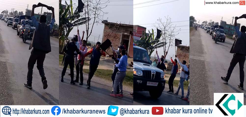 भैरहवा । डा. सिके राउत नेतृत्वको जनमत पार्टीका कार्यकर्ताहरुले गृह जिल्ला रुपन्देहीमा गृहमन्त्री बालकृष्ण खाँणलाई कालो झण्डा देखाएका छन् ।