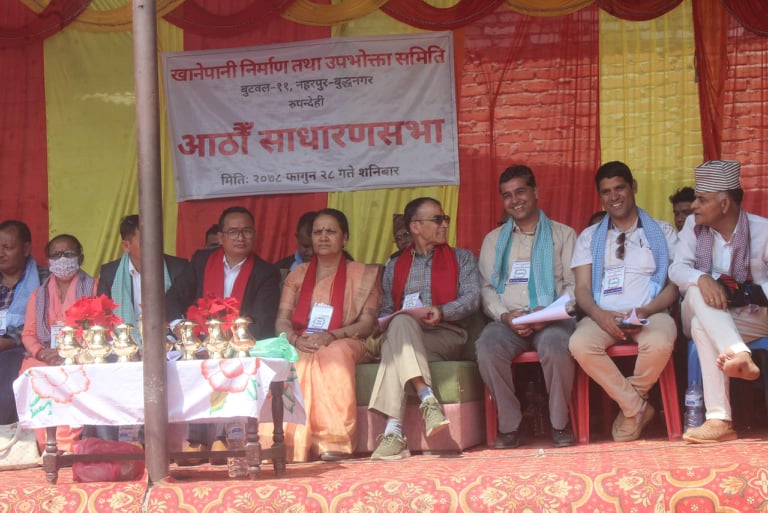 बुटवल । खानेपानी निर्माण तथा उपभोक्ता समिति नहरपुरको आठौं साधारण सभा सम्पन्न भएको छ । समितिका अध्यक्ष आशिष सुर्यवंशीको अध्यक्षतामा भएको साधारण सभामा बुटवल उपमहानगरपालिकाका उप प्रमुख गुमादेवी आचार्यको प्रमुख आतिथ्यता रहेको थियो ।