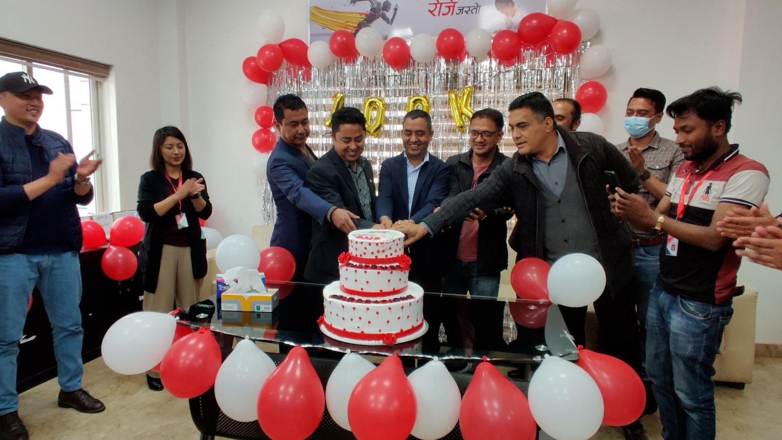 आउँदो समय ग्राहक संख्या विस्तार संगै भरपर्दो सेवाको निरन्तरता प्रदान गर्ने प्रण गर्दैै डिशहोमका कर्मचारीहरुले एक लाख ग्राहक संख्या पुगेको मा केक काटेर खुसियाली मनाएका छन् ।