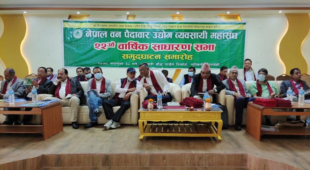 लुम्बिनीमा सोमबार सम्पन्न नेपाल वन पैदावार उद्योग ब्यवसायी महासंघको २२ औं वार्षिक साधारण सभाको संघीय वन तथा वातावरण मन्त्रालयका सचिव डा.प्रेम नारायण कंडेलले उदघाटन गरे । उदघाटन कार्यक्रमलाई सम्बोधन गर्दै सचिव कंडेलले बन्दै गरेको नियमावली धेरै वन उद्यमीहरुको सम्बोधन हुने दाबी गरे । उनले तयार हुँदै गरेको वन नियमावली कार्यान्वयनमा आउन सके २ वर्षभित्र देशलाई काष्ठ उत्पादनमा आत्मनिर्भर बनाउन सकिने बताए । उनले राजनीतिक अस्थिरताका कारण समयमा नियमावली बन्न नसकेको उल्लेख गर्दै राजनीतिक अवस्थामा सुधार नहुँदा सम्म कार्यान्वयनको अवस्था सजिलो नभएको स्पष्ट पारे । एक महिना भित्र प्रस्तावित नियमावली मन्त्रिपरिषदबाट स्विकृत भई कार्यान्वयनमा जाने प्रतिबद्धता समेत उनले व्यक्त गरे ।