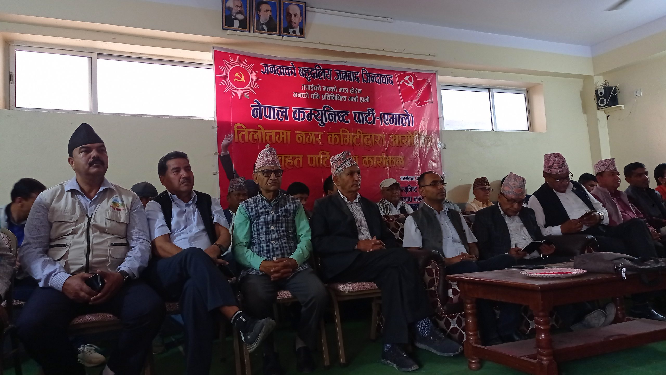 एमाले तिलोत्तमा नगर कमिटी अध्यक्ष तामानाथ पाण्डेको अध्यक्षतामा भएको कार्यक्रममा जिल्ला अध्यक्ष तेजेन्द्र केसी, तिलोत्तमा नगर उपाध्यक्ष नेत्रलाल बन, सचिव मिनप्रसाद पोखरेल, नवप्रवेशी तुलसीप्रसाद सापकोटा, खिमानन्द न्यौपानेगायतले आ-आफ्नो धारणा राखेका थिए ।