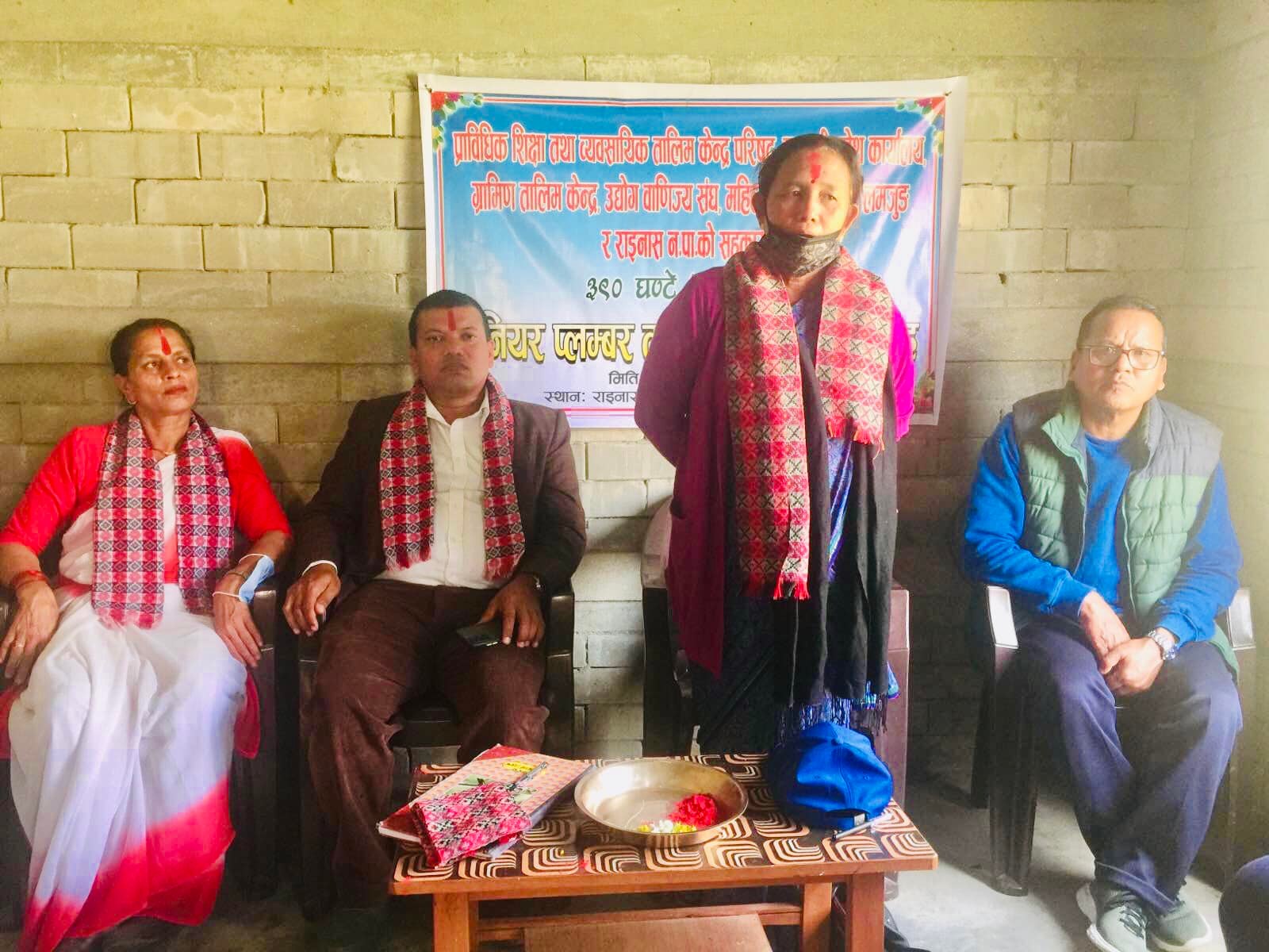 नगरपालिका भित्रका युवायुवतीलाई व्यवसायिक सिप सिकाएर गाउँठाउँमै स्वरोजगारको अवसर सिर्जना गर्ने नगरपालिकाको उद्देश्य रहेको राइनास नगरपालिकाकी उपमेयर धनकुमारी गुरुङले बताइन् ।