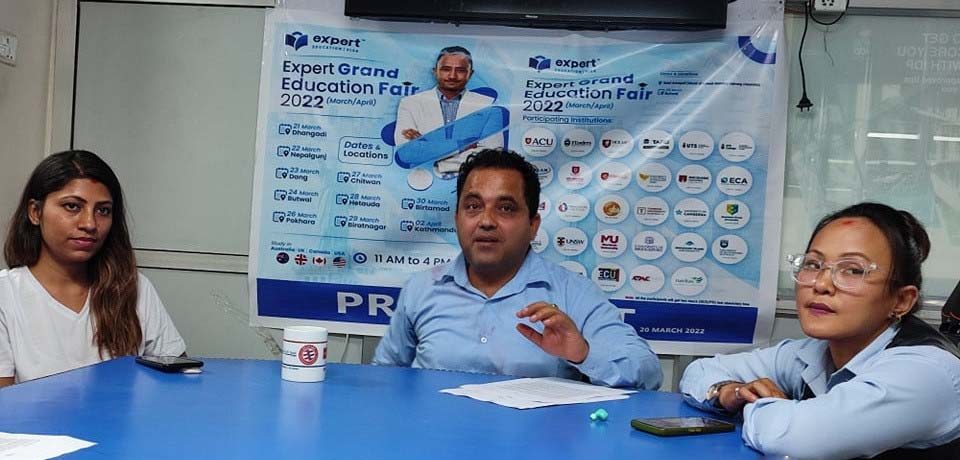 वैदेशिक अध्ययनमा जान चाहने विद्यार्थीहरुलाई विश्वसनिय जानकारीहरु प्रदान गर्ने उद्येश्यले यस संस्थाले विगतका वर्षहरूमा झै यस वर्ष पनि नेपालका प्रमुख शहरहरु धनगढी, नेपालगञ्ज, घोराही, बुटवल, पोखरा, नारायणगढ, हेटौडा, विरागनगर, विर्तामोड र काठमाण्डौमा क्रमशः चैत्र ७ चैत्र ८, चैत्र ९ चैत्र १० चैत्र १२ चैत्र १३, चैत्र १४, चैत्र १५ चैत्र १६ र चैत्र १८ गते एक्सपर्ट ग्रान्ड एडुकेशन फेयर २०२२ मार्च अप्रिल’ आयोजना गर्न लागेको हो ।