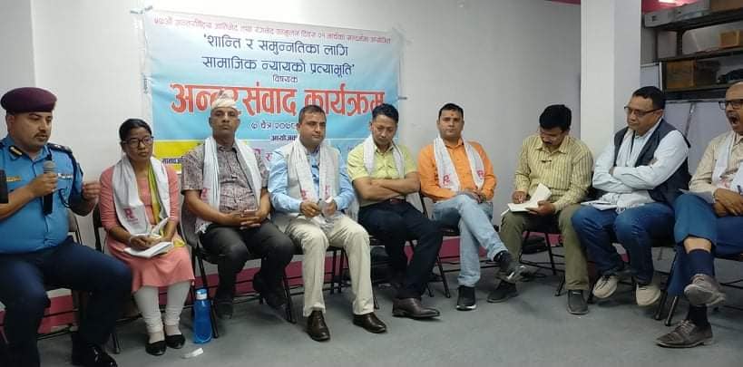 शान्ति र सम्मुन्नतीका लागि सामाजिक न्यायको प्रत्याभूती बिषयक अन्तरसंवादलाई सम्बोधन गर्दै मानव अधिकार तथा शान्ति समाजका केन्द्रीय सभापती गोविन्द खनालले विभेद रहित समाजमा मात्रै शान्ति कायम हुने भएकाले मानव सभ्यताको कलंकको व्यवहारमै अन्त्य गर्नुपर्ने बताए । उनले विभेदका घटनामा राज्यपक्षले लुकाउन खोजेको बताउँदै छुवाछुत अमानवीय र अपराधिक कार्य भएको बताए ।