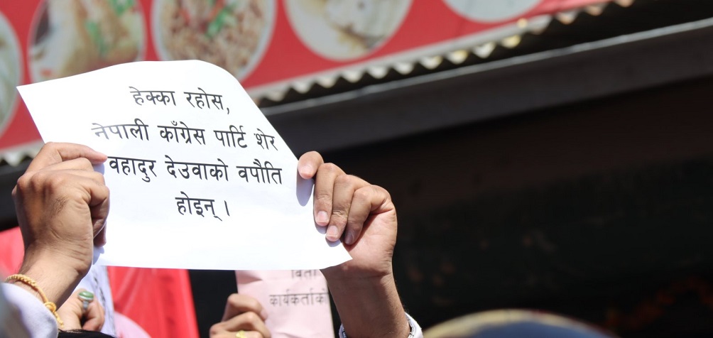 गत बुधवार सभापति शेरबहादुर देउवाले नेविसंघ अध्यक्षमा दुजाङ शेर्पा र तरुण दलको अध्यक्षमा विद्वान गुरुङलाई नियुक्त गरेपछि असन्तुष्ट शेखर कोइराला समूहका विद्यार्थी नेताहरूले विरोध प्रदर्शन गरेका हुन् ।