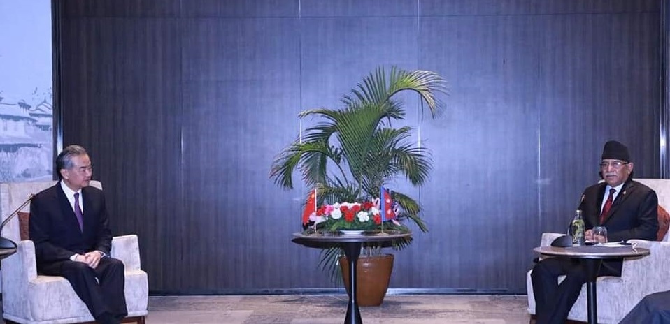 चिनियाँ विदेशमन्त्री वाङ यी र माओवादी अध्यक्ष प्रचण्डबीच भेटवार्ता