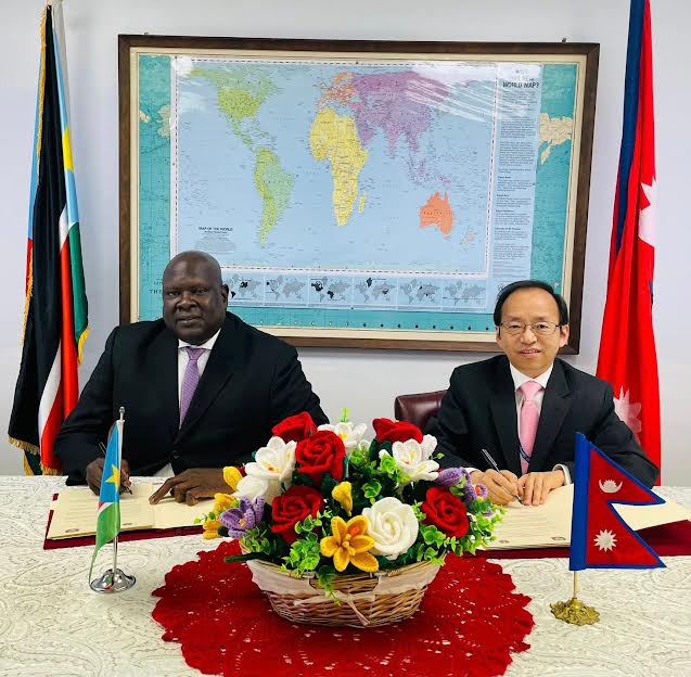 कूटनीतिक सम्बन्ध स्थापना गर्ने संयुक्त पत्रमा नेपालको तर्फबाट न्युयोर्कस्थित राष्ट्रसंघका लागि नेपाली स्थायी प्रतिनिधि तथा राजदूत अमृत बहादुर राई र दक्षिण सुडानको तर्फबाट राष्ट्रसंघका लागि दक्षिण सुडानका स्थायी प्रतिनिधि तथा राजदूत अकुई बोना मलवालले हस्ताक्षर गरेका थिए ।
