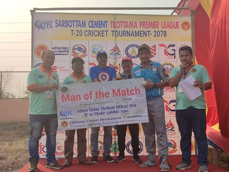 दोस्रो खेलमा धिरज शाही म्यान अफ द म्याच भए । आइतबारको खेल तिलोत्तमा टाइगर्स र नेपथ्य गोल्ड बीच तथा दोस्रो खेल न्यु होराइजन र एकोन भैरहवा बीच हुने समितिका अध्यक्ष दीपक शर्मा भुर्तेलले जानकारी दिए । चौथो संस्करणको प्रतियोगितामा ८ टिम सहभागी छन् ।