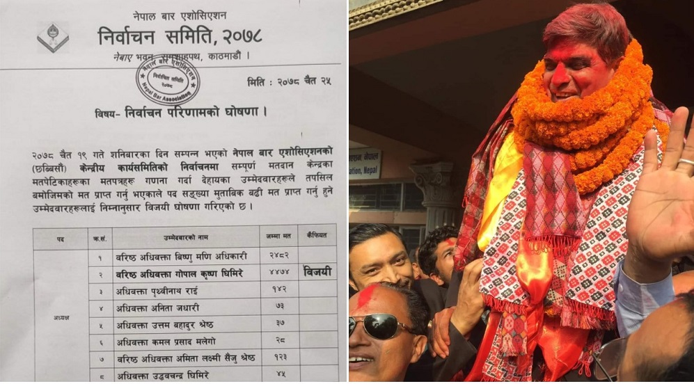 कांग्रेसनिकट डेमोक्रेटिक लयर्स एसोसिएसनका पूर्व अध्यक्षसमेत गोपालकृष्ण घिमिरेसहित संयुक्त प्यानल नै निर्वाचित भएको हो । सबै पदमा गठबन्धननिकट उम्मेदवारहरू विजयी भएका हुन् ।