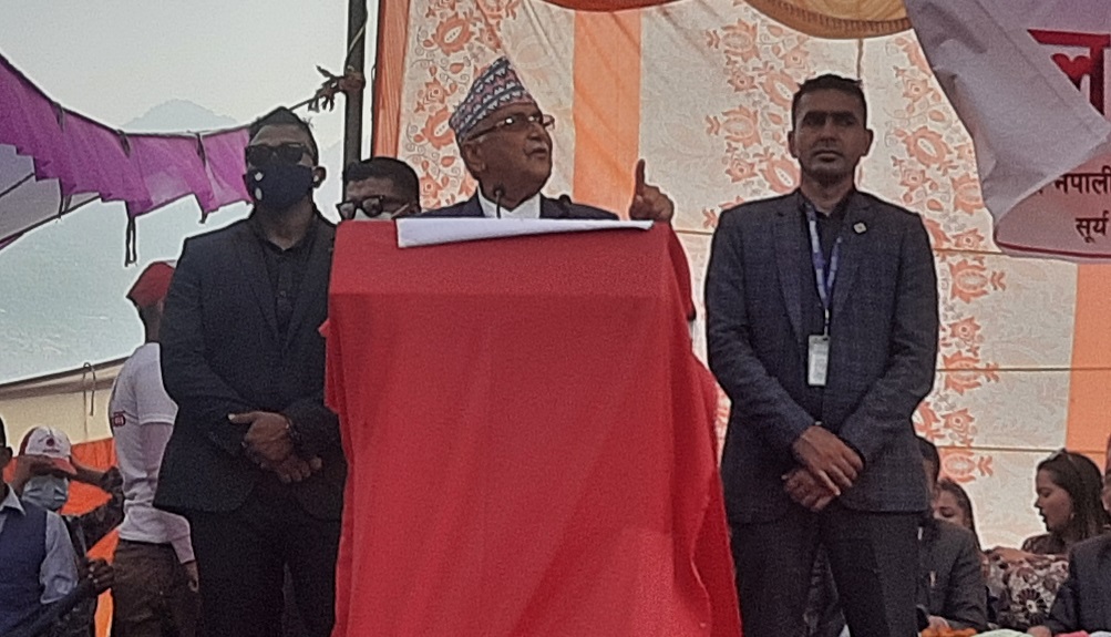 वर्तमान सरकार चुनाव सार्ने कोसिस गरिरहेको समेत ओलीले आरोप लगाए । पाँच दलीय गठबन्धन जति ठूलो भएको भनिए पनि एमाले जति नपुग्ने उनको दाबी छ ।