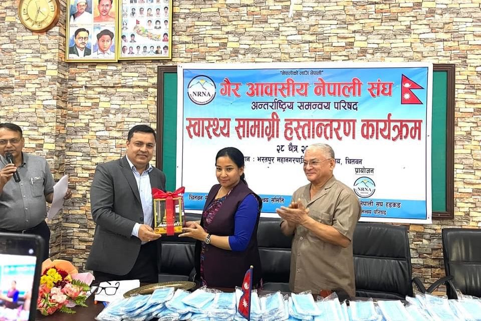 चितवन । गैरआवासीय नेपाली संघ (एनआरएनए) हङकङ राष्ट्रिय समन्वय परिषदको सौजन्यमा भरतपुर महानगरपालिकालाई एनआरएनएले स्वास्थ्य सामाग्री हस्तान्तरण गरेको छ । चितवन सेवा समाज अन्तर्राष्ट्रिय समन्वय समिति नेपालको संयोजनमा भरतपुर महानगरपालिकालाई सोमवार १० थान अक्सिजन कन्सन्ट्रेटर हस्तान्तरण गरिएको हो ।