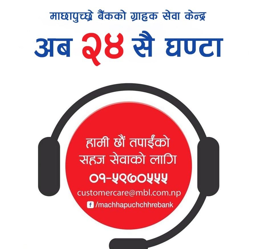 काठमाडौ । माछापुच्छ्रे र्बैंकले नयाँवर्ष २०७९ को अवसर परि आफ्नो ग्राहक सेवा केन्द्रलाई दिनको २४ सै घण्टा र हप्ताको सातै दिन सञ्चालनमा ल्याउने गरि सुरुवात गरेको छ ।