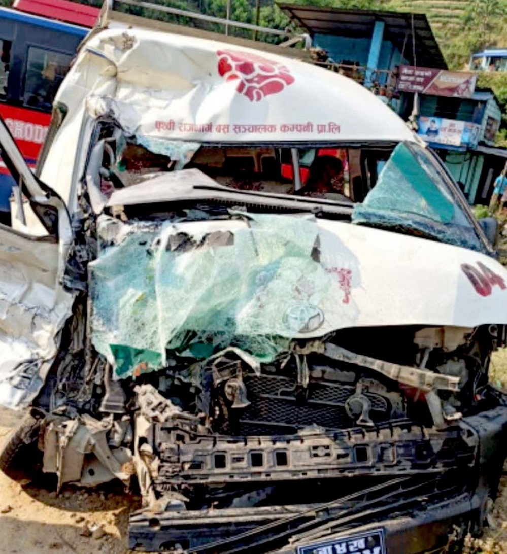 आइतबार बिहान पोखराबाट काठमाडौंतर्फ जाँदै गरेको बा४ख २७०४ नम्बरको माइक्रो बस ओभरटेक गर्ने क्रममा विपरीत दिशाबाट आउँदै गरेको बा८च ७०३६ नम्बरको कारलाई ठक्कर दिई सोही दिशाबाट आउँदै गरेको ना८ख २०१४ नम्बरको ट्रकसँग ठोक्किँदा माइक्रोमा सवार १७ जना घाइते भएका हुन् ।
