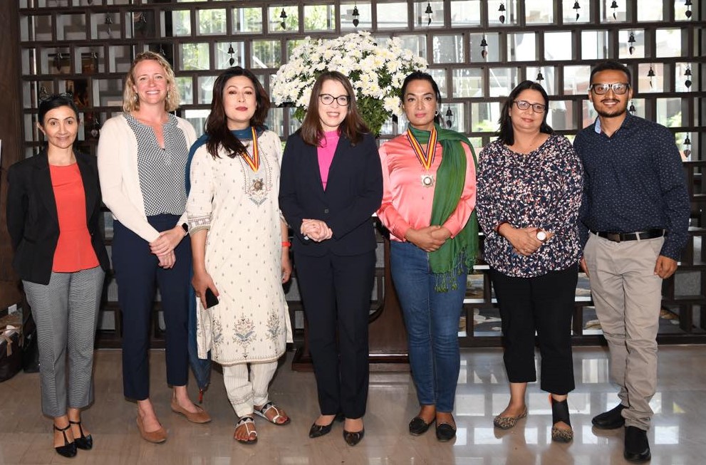 काठमाडौं । नेपाल भ्रमणमा रहेकी अमेरिकी उपसहायक विदेशमन्त्री केली काइडरलिङले अन्तर्राष्ट्रिय साहसी महिला पुरस्कार विजेता तथा नेपाली ‘एलजीबीटीक्युआई प्लस’ अभियन्ता भूमिका श्रेष्ठसँग भेट गरेकी छन् ।