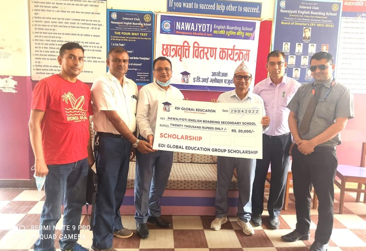 तिलोत्तमा । तिलोत्तमा नगरपालिका-८ स्थित नवज्योति बोर्डिङ स्कुल लाई ईडीआई ग्लोबल एजुकेसन ग्रुपले छात्रवृत्तिका लागि रकम प्रदान गरेको छ ।