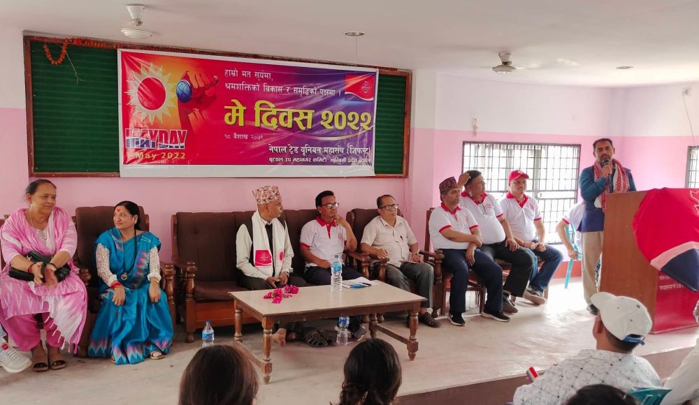 बुटवल । विश्वका मजदुर एक हौं भन्ने मुल नाराका साथ बुटवलमा अन्तराष्ट्रिय मजदुर दिवस मनाईएको छ । नेपाल नेपाल ट्रेड युनियन महासंघ बुटवल उपमहानगरकमीटिको आयोजनामा बुटवलमा अन्तरक्रिया कार्यक्रम गर्दै अन्तरराष्ट्रिय श्रमिक दिवस मनाइएको हो ।