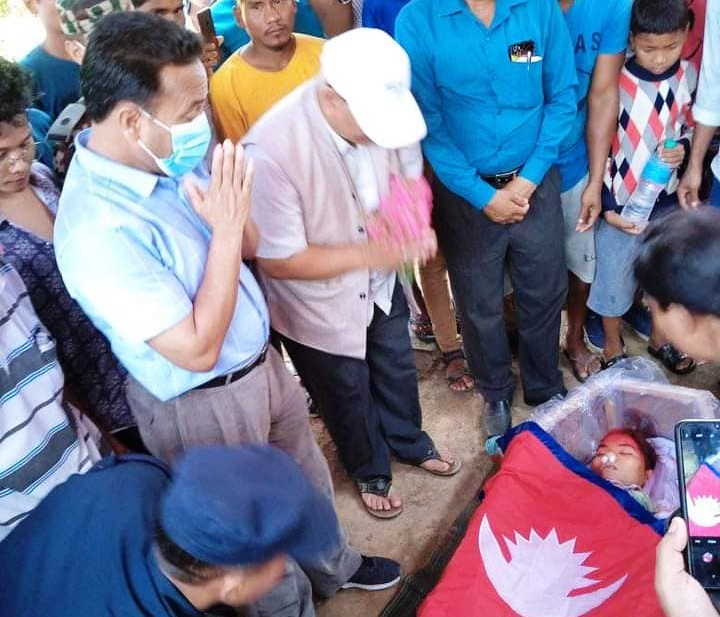 खेलकुद मन्त्री अथकद्धारा भारोत्तोलन खेलाडी चौधरीको पार्थिव शवमा राष्ट्रिय झण्डा ओढाएर सम्मान