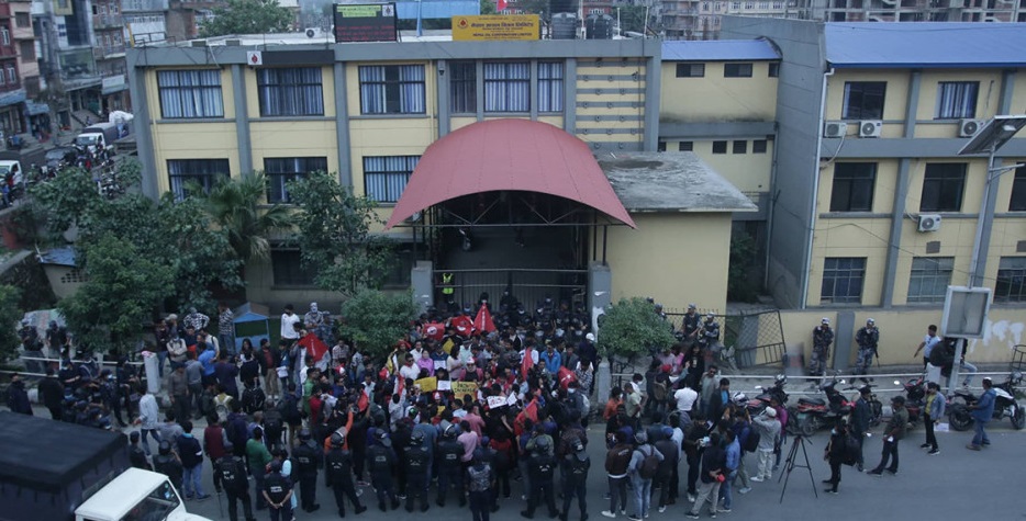 पेट्रोलियम पदार्थमा भएको मूल्यवृद्धि विरुद्ध सत्तारुढ विद्यार्थी संगठनहरुद्वारा निगम घेराऊ