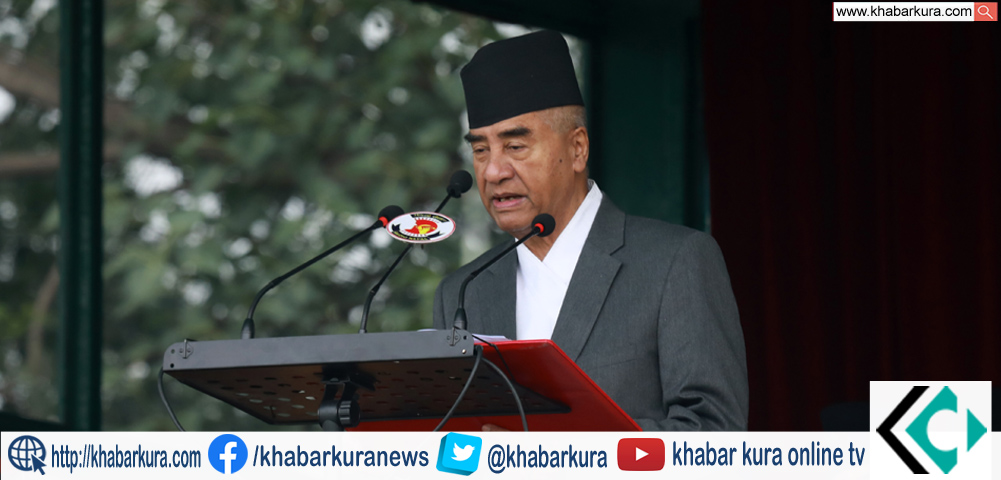 “समृद्ध मुलुक निर्माणका लागि सबै राजनीतिक दल र नेपाली जनताबीच एकता र सहकार्य हुनु जरुरी छ । लोकतन्त्रमा राजनीतिक दलका फरक धारणा र विचारहरू हुनु स्वाभाविक हो । तापनि, महत्त्वपूर्ण राष्ट्रिय मुद्दाहरूमा सबै राजनीतिक दल र आम नेपाली जनताको समान र अविचलित धारणा हुन सके मात्र मुलुकको विकासको पथमा अघि बढाउन र राष्ट्रिय एकताको जगलाई थप मजबुत बनाउन सकिन्छ,” प्रधानमन्त्री देउवाले भने, “हामीले जुन अपेक्षा र उद्देश्यका साथ लोकतान्त्रिक गणतन्त्रात्मक शासन व्यवस्थाको स्थापना गरेका थियौँ, व्यवहारमा त्यो लागु भएको छ । नागरिक हक, अधिकारको पूर्ण सुनिश्चितता गर्दै मुलुकलाई आर्थिक, सामाजिक रूपमा सबल र सम्मुनत राष्ट्र बनाई जनताको जीवनस्तरमा उल्लेखनीय सुधार ल्याउने हाम्रो प्रयासले अपेक्षित परिणाम दिन थालिसकेको छ । मुलुकको आर्थिक, सामाजिक रूपान्तरणको अभियानमा हामी सबैको योगदान उत्तिकै आवश्यक छ ।”