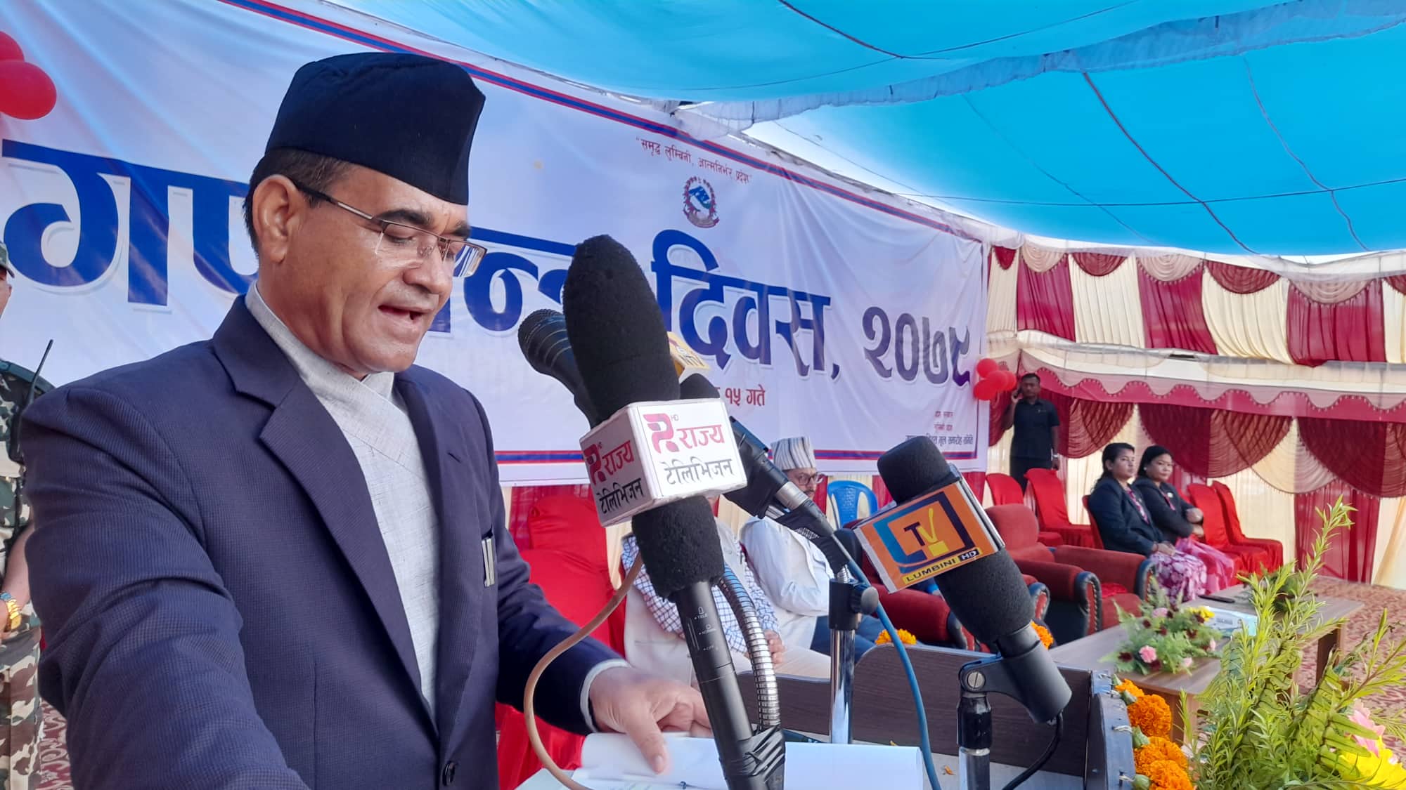 प्रदेश सरकारको आयोजनामा आज बुटवलमा आयोजित गणतन्त्र दिवस २०७९ विशेष समारोहलाई सम्बोधन गर्दै मुख्यमन्त्री केसीले सार्वभौम नेपाली जनताले अधिकार प्राप्त गरेको जेठ १५ एउटा युगान्तकारी परिवर्तन र ऐतिहासिक घटनाक्रमको रुपमा युगौंयुगसम्म रहने बताए ।