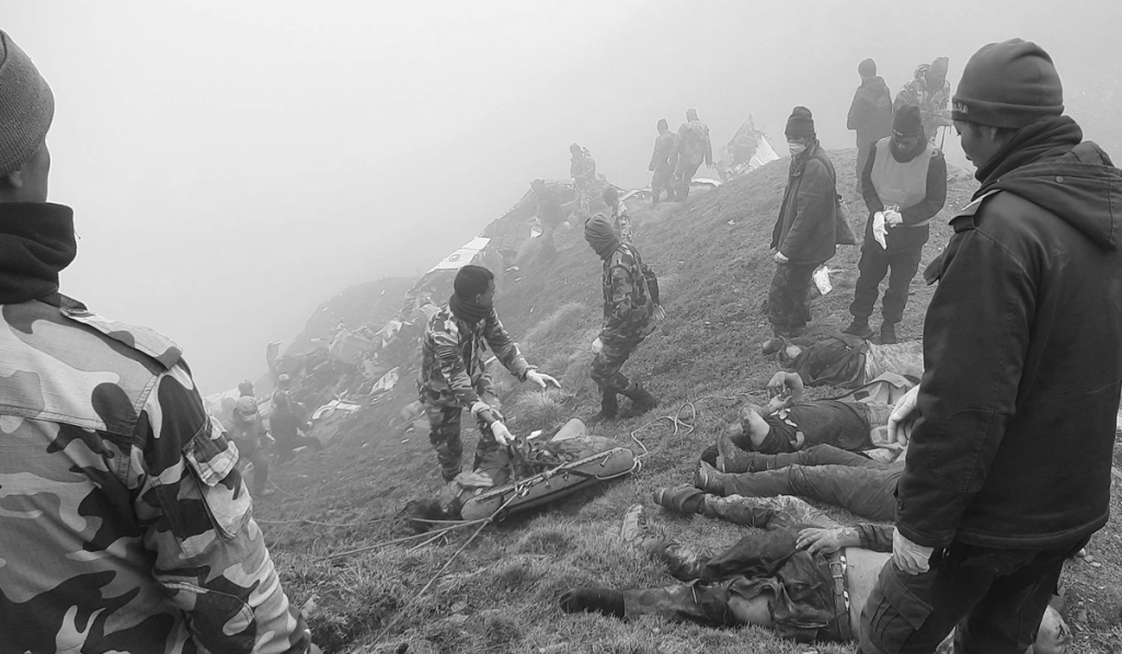करिब १०० नेपाली सेना, सशस्त्र प्रहरी, नेपाल प्रहरी, शेर्पा र स्थानीयवासी घटनास्थल पुगेका थिए । अरु फर्किए पनि सेना र प्रहरीको १४ जनाको उद्धारको तालिमप्राप्त सुरक्षाकर्मी सानोसरेमा पाल टाँगेर बसेका थिए । घटनास्थल पुगेर फर्किएका स्थानीयवासी इन्द्रसिंह शेरचनले विमानको पखेटा पहाडमा ठोक्किएर तल झरेको देखिने बताए । “विमान भिरालो पाखोमा ठोक्किएर तल खोंचमा खसेको देखिन्छ”, उनले भने, “शवहरू धार परेको डाँडामा वल्लोपल्लो पाखामा छरिएका थिए । केही तल्लो डिलमुनि पुगेका थिए ।”