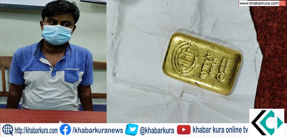 महोत्तरी । महोत्तरीमा ११६.५० ग्राम बिस्कुट आकारको सुन बोकेर हिँडिरहेका एक जनालाई प्रहरीले नियन्त्रणमा लिएको छ ।