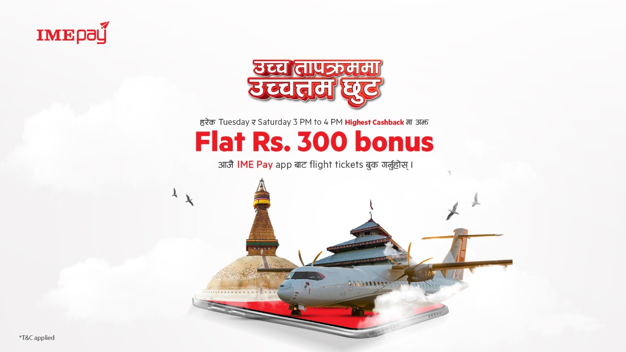 आइएमई पेबाट हवाई टिकटमा सर्वाधिक क्यासब्याकसँग अतिरिक्त ३०० छुट पाइने