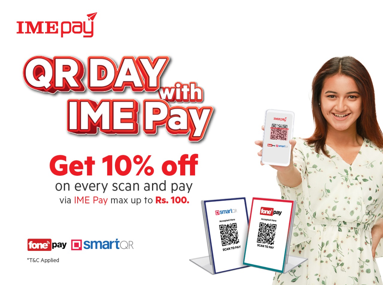 काठमाडौ । आइएमई डिजिटल सोलुसन लिमिटेडद्वारा प्रवद्र्घित “आइएमई पे” ले प्रयोगकर्ता माझ ‘क्यूआर डे विथ आइएमई पे’ अफर सार्वजनिक गरेको छ ।