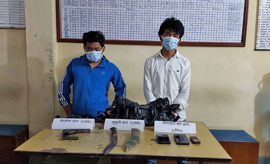 प्रहरीले उनीहरूको साथबाट पेस्तोल एक थान, खुकुरी एक थान र मोबाइल सेट तीन थान बराममद गरेको छ । उनीहरूमाथि थप अनुसन्धान थालिएको प्रहरीको भनाइ छ ।