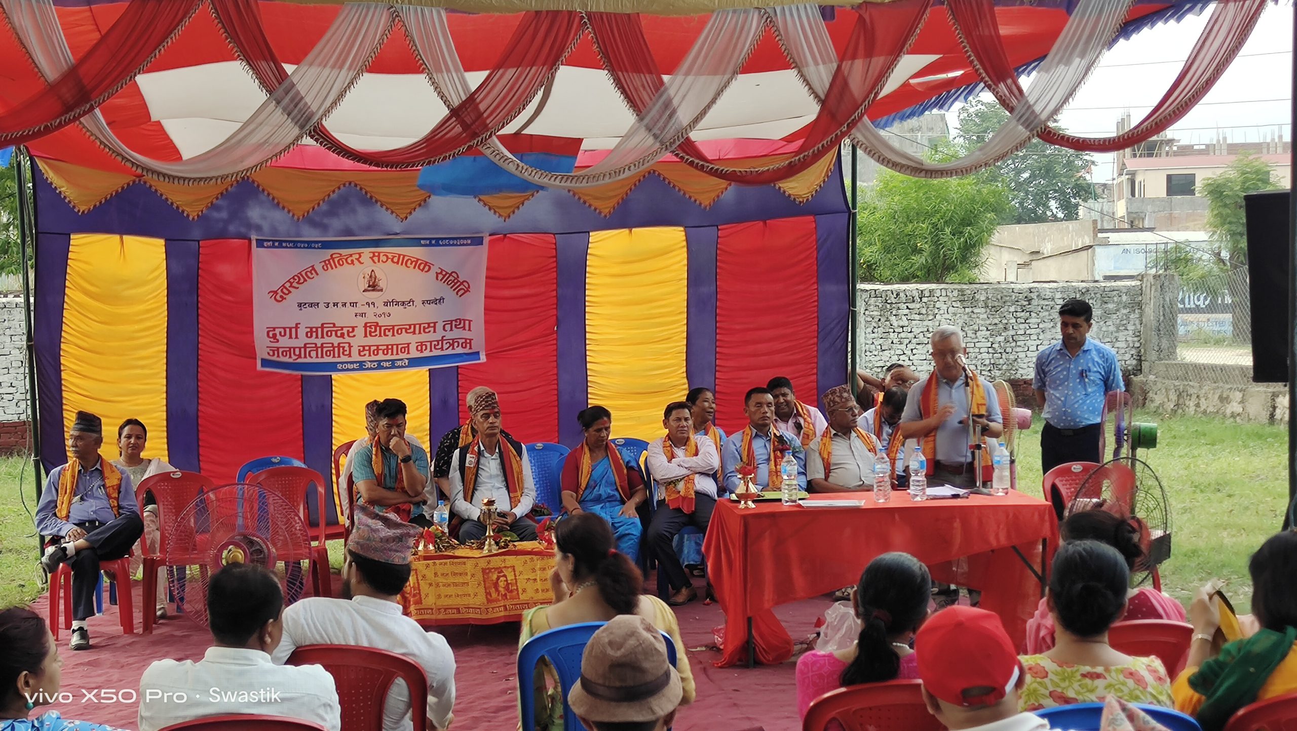 कार्यक्रममा देवस्थल मन्दिर संचालक समितिका सचिव कमल नेपाल, वरिष्ठ उपाध्यक्ष पुष्पा शर्मा, कार्यक्रममा ई. नारायण बहादुर गुरुङले मानसिक शान्ति दिने रुपमा यो स्थानलाई विकास गराउनुपर्ने बताए । हाल मन्दिरको ३५ जना आजिवन सदस्य र १ सय ५१ साधारण सदस्य रहेको छ ।