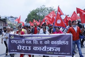 एमसीसी कार्यालयअघि विप्लप नेकपाको प्रर्दशन