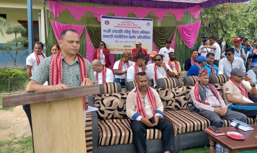 एथ्लेटिक्सतर्फको खेल सोमबार हुने कराते प्रशिक्षक उमेश थापाले बताए । प्रतियोगितामा रुपन्देही जिल्लाका बुटवल उपमहानगरपालिका, तिलोत्तमा नगरपालिका, देवदह नगरपालिका, सैनामैना नगरपालिका, कंचन गाउपालिका, रोहीणी गाउपालिका र ओमसतिया गाउपालिका गरि सात वटा स्थानिय तहका खेलाडीहरुले भाग लिएको उनले बताए ।