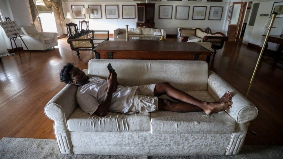 तर राष्ट्रपति आफैं देखिएका छैनन् र सार्वजनिक बयान दिएका छैनन् । उनी हाल श्रीलंकाको जलक्षेत्रमा नौसेनाको जहाजमा रहेको सैनिक स्रोतलाई उद्धृत गर्दै बीबीसीले जनाएको छ । उनका भाइ पूर्व प्रधानमन्त्री महिन्दा राजापाक्षे पनि नौसेनाको आधारमा रहेको बताइएको छ ।