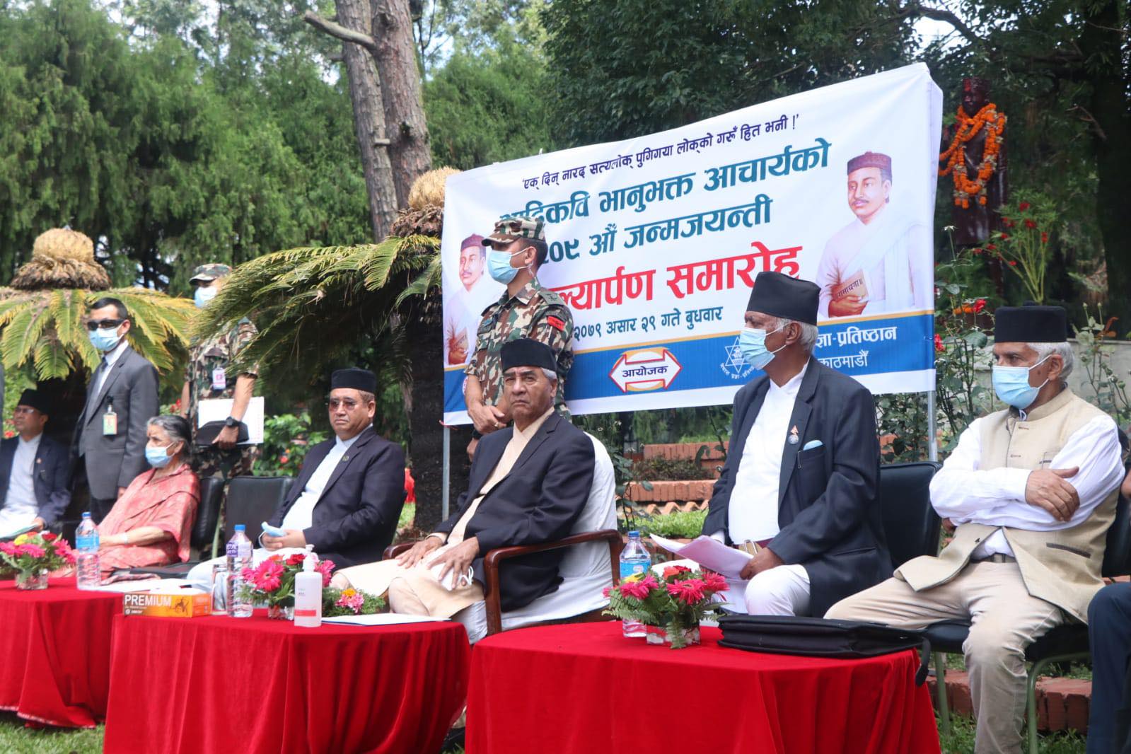 काठमाडौंमा आयोजित एक कार्यक्रमका बीच नेपाली लोक लयमा आधारित नेपाली रामायणका रचनाकार आदिकवि भानुभक्तको शालिकमा प्रधानमन्त्री देउवाले माल्यार्पण गरेका हुन ।