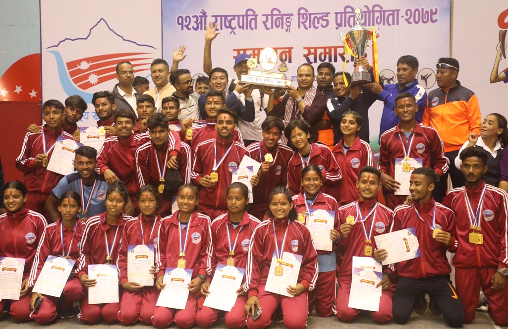 काठमाडौं । साविक विजेता लुम्बिनी प्रदेशले १२ औं केन्द्रीय स्तरीय राष्ट्रपति रनिङ सिल्ड खेलकुद प्रतियोगिताको उपाधि हात पार्न सफल भएको छ ।