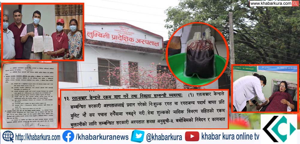 बुटवल । सामान्यतया रगतको खरिद बिक्री हुने गर्दैन । नेपालमा एकलौटीरुपमा रक्त संचार केन्द्र चलाईरहेको नेपाल रेडक्रस सोसाईटीले पनि रगतको मुल्य नलिएर रगत निकाल्दा, परिक्षण गर्दा र भण्डारण गर्दा लाग्ने लागतमात्र लिएको दाबी गर्दै आएको छ । तर सुन्दा अचम्म लाग्छ, प्रदेश सरकार र नेपाल रेडक्रस सोसाईटी रुपन्देहीबीच साउन १ गतेबाट निशुल्क दिने भनि घोषणा गरिएको सम्झौतामा रेडक्रसले रगतको तीनथरी मुल्य राखेर सम्झौता गरेको पाईएको छ ।