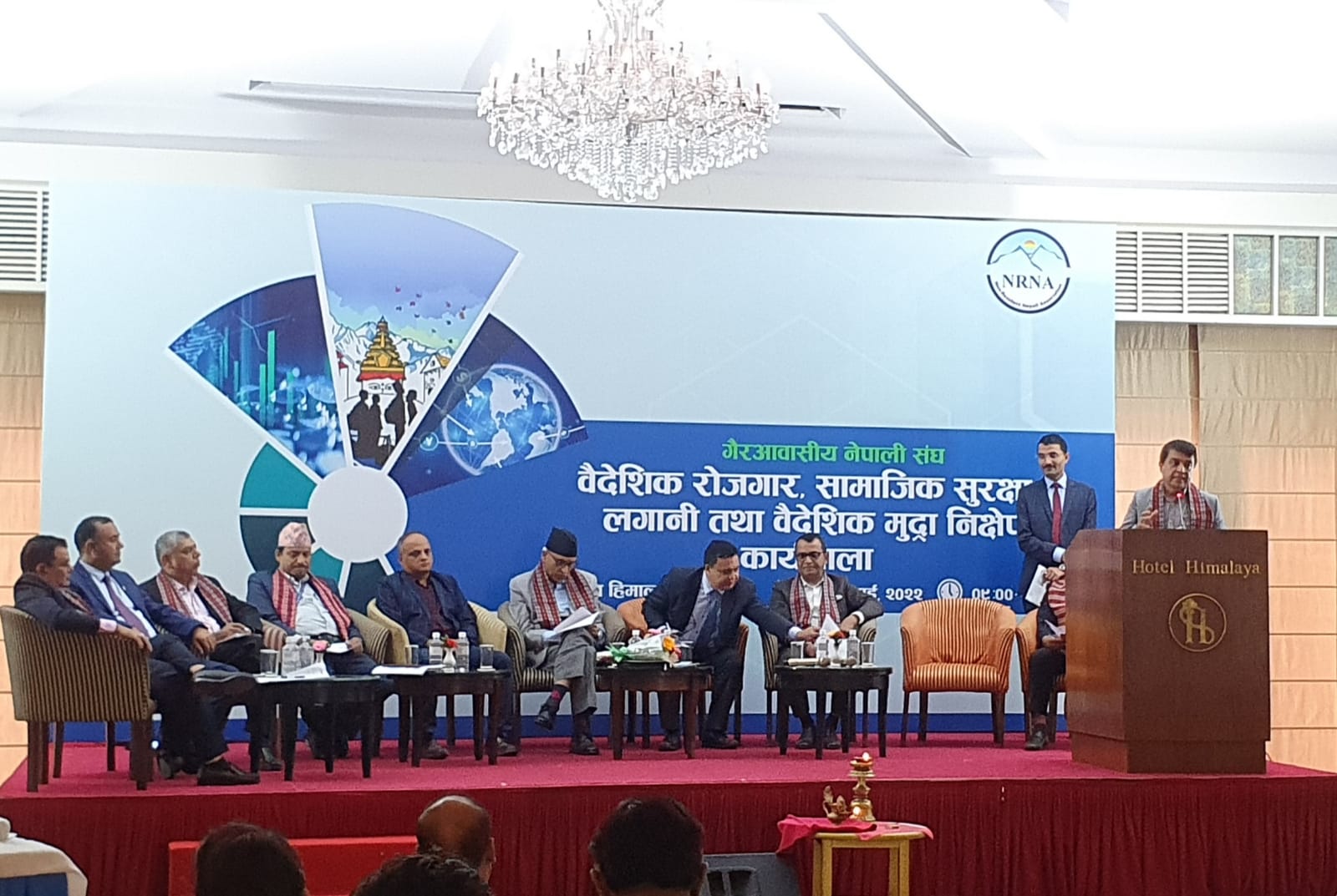 गैर आवासीय नेपाली संघले बिहीबार राजधानीमा आयोजना गरेको वैदेशिक रोजगार, सामाजिक सुरक्षा, लगानी तथा वैदेशिक मुद्रा निक्षेपसम्बन्धी कार्यशालालाई सम्बोधन गर्दै वरिष्ठ उपाध्यक्ष ढकालले कोभिड १९ महामारी तथा रुस–युक्रेन युद्धका कारण मुलुकमा वैदेशिक मुद्रा संचितिमा संकुचन देखिएको बताउँदै यो नेपालभित्र विदेशी मुद्रा भित्रयाउने र लगानी विस्तार गर्ने उपयुक्त अवसर भएको बताए ।