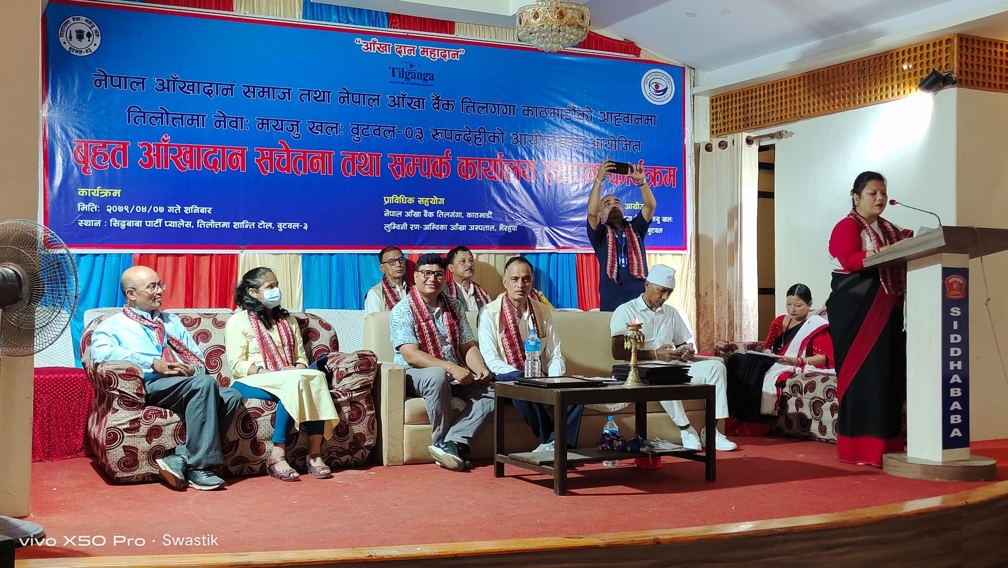 कार्यक्रममा बुटवल उपमहानगरपालिकाका नगरप्रमुख खेलराज पाण्डेले आँखादानको महत्व समुदायमा बुझाउन नसक्दा दाता कम भएको बताए । स्थानिय टोलटोलबाट समितिहरु परिचालित गरेर आँखा दानको महत्व बुझाउदै अभियानलाई घरदैलोका रुपमा अघि बढाउन उनले प्रतिवद्धता जनाए ।