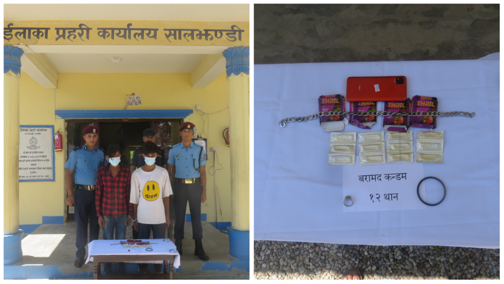 प्रहरीका अनुसार उनिहरुबाट ब्ल्याकमेलिङमा प्रयोग भएको स्मार्टफोन र १२ थान कण्डम बरामद भएको ईलाका प्रहरी कार्यालय सालझण्डीले जनाएको छ । पक्राउ परेका दुवैजनालाई जवर्जस्ती करणी उद्योग कसुर अन्तरगत म्याद थप भई थप अनुसन्धान भैरहेको प्रहरी निरीक्षक जगन्नाथ मरासिनीले बताए ।