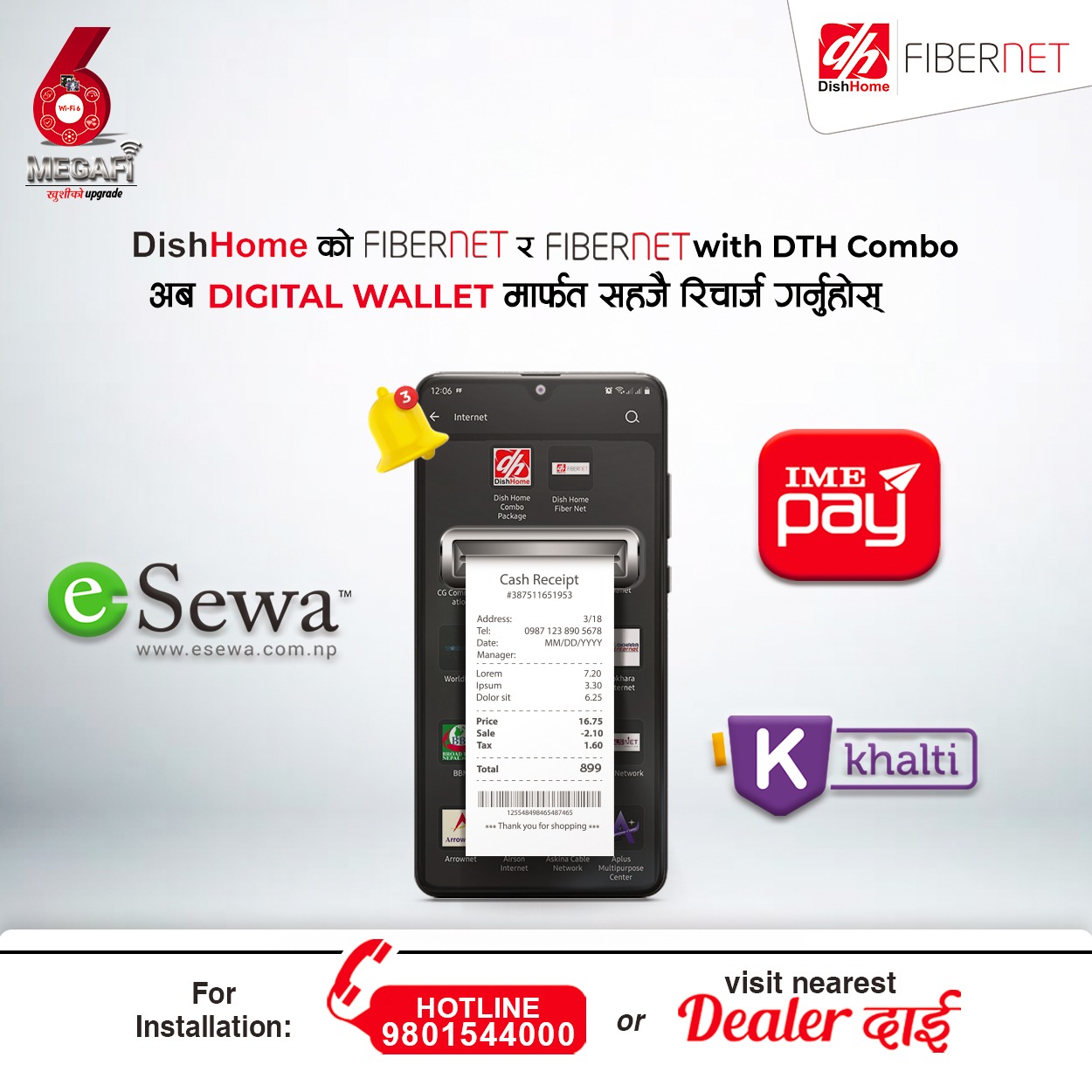 काठमाडौ । डिशहोमले प्रदान गर्ने सेवाहरु फइवरनेट, डिटिएच र फइवरनेटंडिटिएच कम्बो अव नेपालमा उपलव्ध अनलाइन सेवा मार्फत गर्न सकिन्छ ।