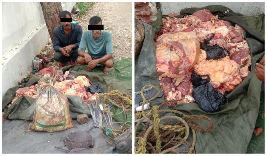 गोप्य सुचनाको आधारमा प्रहरी टोलीले खानतलासी गर्ने क्रममा पक्राउ परेकाहरुबाट १६० केजी गाईको मासु बरामद भएको प्रहरीले जनाएको छ । कानुन अनुसार नेपालमा गाई काट्न नपाईने व्यवस्था रहेको अवस्थामा गैरकानुनी गौबध भएको कारण पक्राउ गरिएको प्रहरीले जानकारी दिएको छ ।