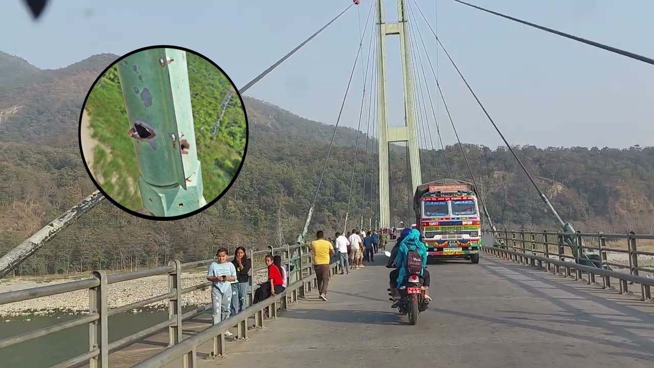 २०६१ सालमा तत्कालीन नेकपा माओवादी र सरकारी सुरक्षा फौजबीच भीडन्त भई गोली हानाहान हुँदा पुलको १४२ ठाउँमा गोली लागेको छ । गोलीले खत लागेको ठाउँमा अहिले खिया लागिरहेको छ । पूर्वपट्टिका लठ्ठा खुकुलो भएपछि हल्लिन थालेको लम्कीचुहा नगरपालिका वडा नम्बर ३ का वडाध्यक्ष लबबहादुर शाहीले बताए ।
