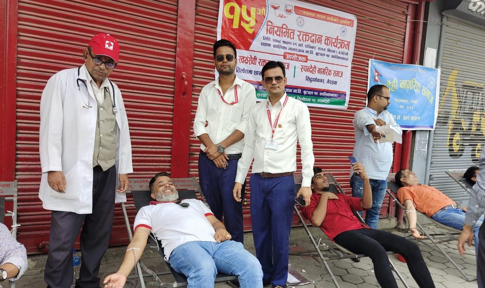 नेपाल स्वयंसेवी रक्तदाता समाज तिलोत्तमा शाखा अध्यक्ष गोविन्द भुसालले संस्थागत रुपमा रक्तदान अभियानलाई चलाउदै आएको बताए ।