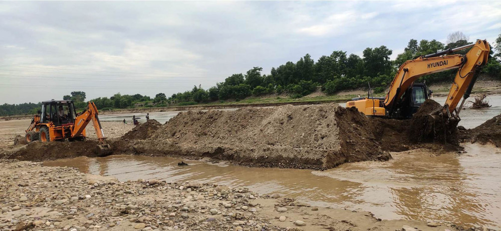 “जनताको तटबन्ध कार्यालयले केही वर्षअघि निर्माण गरेको तटबन्ध बाढीको पानीले भत्काउन थालेपछि जोगाउनका लागि नदीको धार परिवर्तनमा लागेका छौँ”, वडाध्यक्ष अर्जुनबहादुर साउदले भने, “नगरपालिकाले उपलब्ध गराएका दुई वटा स्काभेटरको सहायताले धार परिवर्तनका लागि कार्य अगाडि बढाइएको छ ।” नदीको बाढी बस्तीमा छिरेमा निकै ठूलो धनजनको क्षति हुनसक्ने सम्भावनालाई मध्यजनगर गरी धार परिवर्तन गरी सम्भावित जोखिमलाई न्यूनीकरणमा जुटेको उनले बताए ।