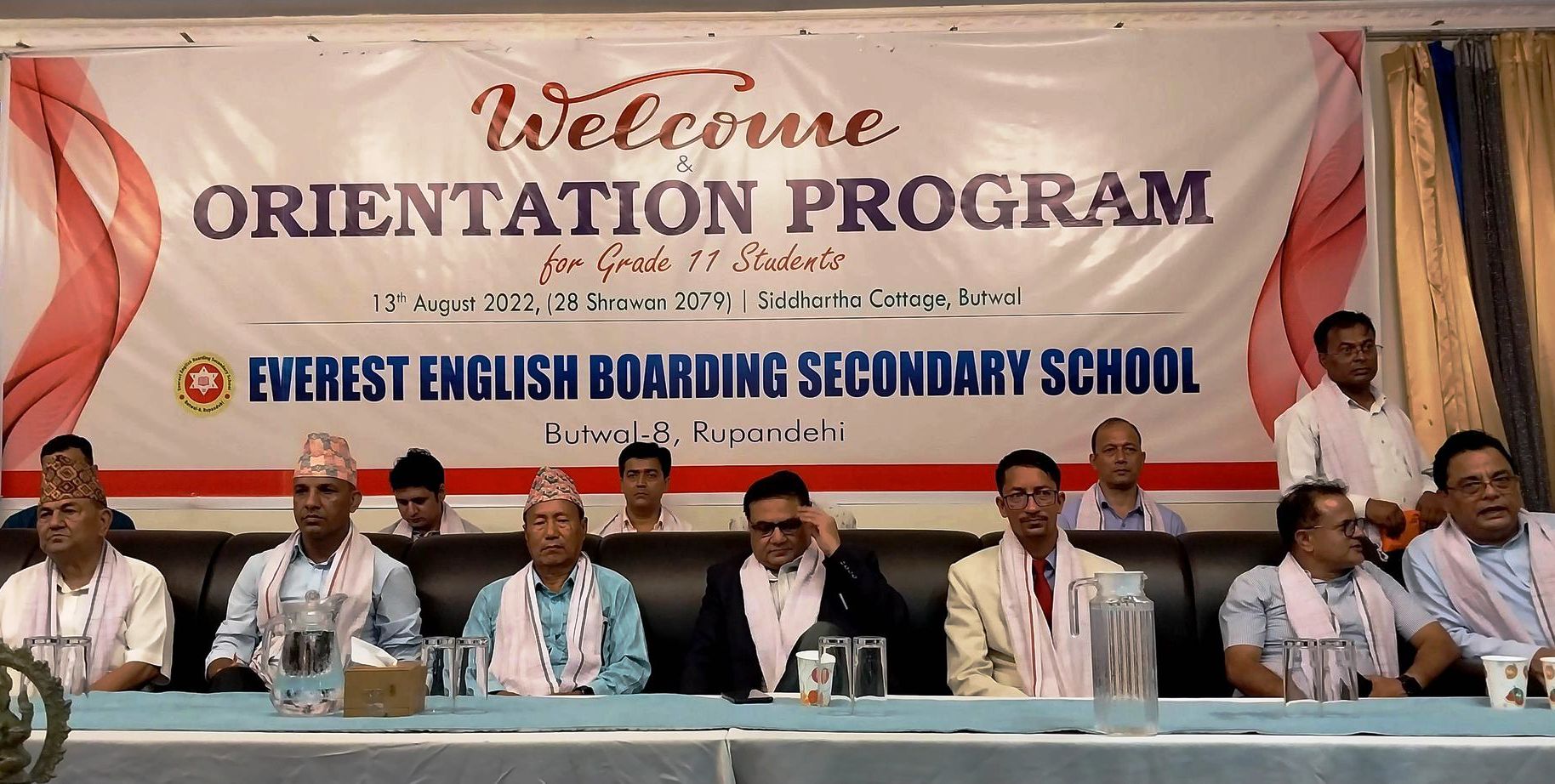 बुटवलन । बुटवल सख्खानगरमा रहेको एभरेष्ट ईङ्गलिस माध्यमिक विद्यालयले कक्षा ११ का विद्यार्थीका लागि शैक्षिक अभिमुखिकरण तथा स्वागत कार्यक्रम गरेको छ ।