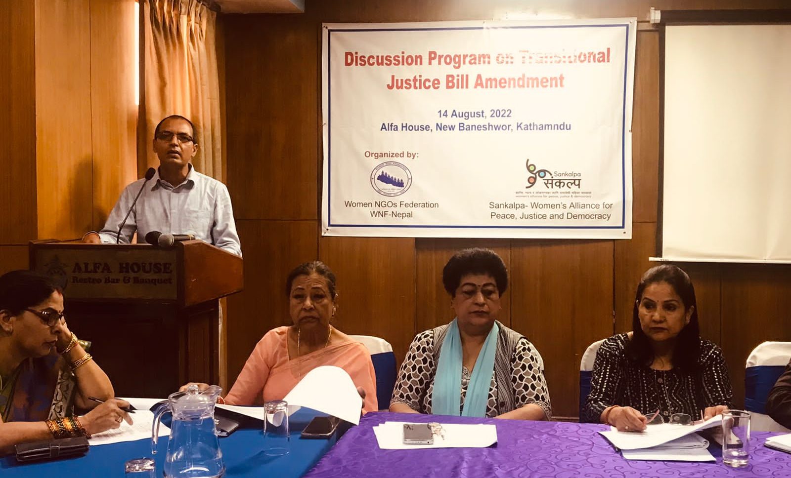 यस विधेयकमा भएका कमीकमजोरीलाई सच्याएर कसरी पीडितले न्याय पाउँछन् भन्नेमा सम्बन्धित पक्षले ध्यान दिनुपर्ने संकल्पकी महासचिव कला स्वर्णकारले बताइन् । त्यसैगरी संकल्पकी अध्यक्ष संगीता लामाले यस बिधेयकलाई जति सक्दो चाडो संशोधन गरेर सशस्त्र द्वन्द्वका पीडितलाई न्यायको अनुभूति गराउनु राज्यको दायित्व भएको जनाइन् ।