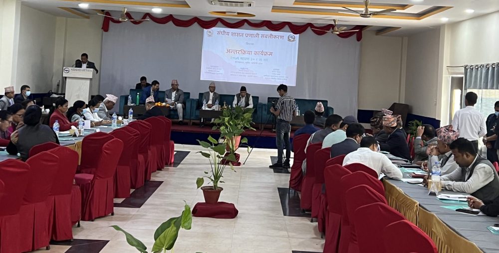 संघीय शासन प्रणाली सबलीकरण अन्तरक्रिया कार्यक्रममा उक्त कुरा बताएको हो । राष्ट्रियसभाका अध्यक्ष गणेशप्रसाद तिमिल्सिनाको उक्त कार्यक्रममा सहभागिता रहेको थियो । राष्ट्रियसभा, संघीयता कर्यान्वयन अध्ययन तथा अनुसन्धान संसदीय विशेष समितिद्धारा आयोजना गरिएको उक्त कार्यक्रममा अधिकांश समय आलोचनामै बितेको थियो ।
