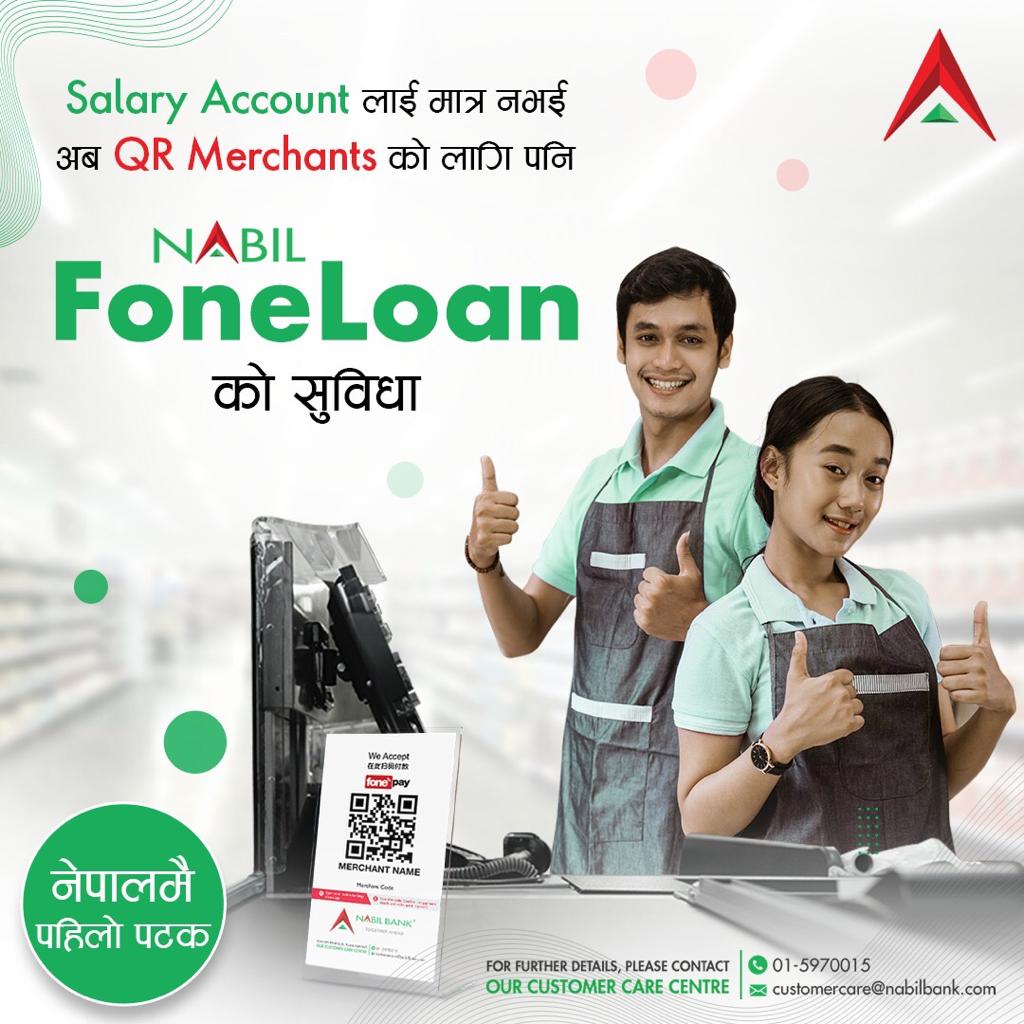 काठमाडौ । नबिल बैंकले नेपालमा पहिलो पटक आफ्ना क्यू आर मर्चेन्टलाई फोनलोनको सुविधा सुभारम्भ गरेको छ ।