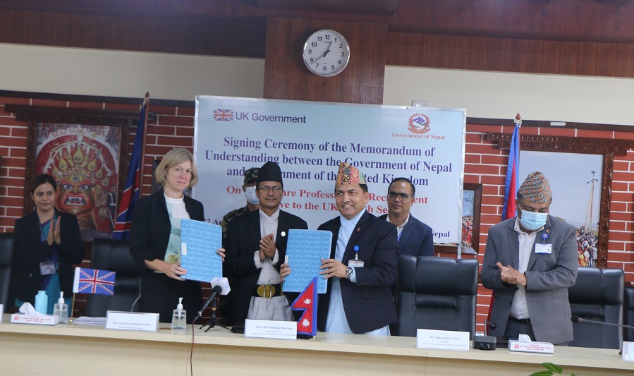 श्रम, रोजगार तथा सामाजिक सुरक्षा मन्त्रालयमा आज एक कार्यक्रमको आयोजना गरी समझदारी पत्रमा हस्ताक्षर गरिएको थियो । समझदारी पत्रमा हस्ताक्षर गरेसँगै नेपाली नर्सलाई रोजगारीको लागि बेलायत जाने खुला भएको छ ।